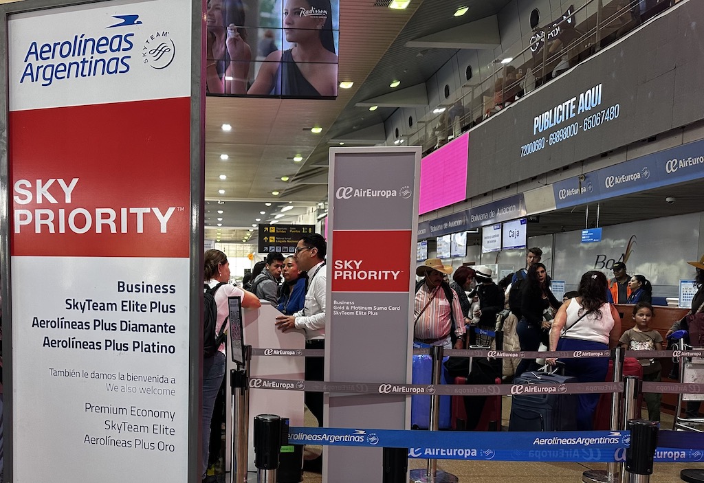 Am Flughafen gab es drei Schalter der Airline, einer davon war als Sky Priority u.a. für Business Class Gäste und Statuskunden reserviert. Eine Business Class wurde zwar auf der ersten Teilstrecke nicht vermarktet, bei der Premium Economy handelt es sich aber um breitere Sitze in den vorderen Reihen des Flugzeugs- mehr als wir von einer Euro-Business Class gewohnt sind.