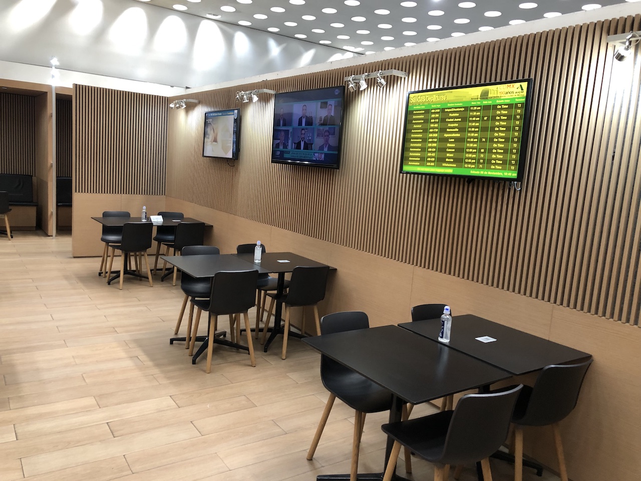 Wesentlich freundlicher und heller empfand ich die Terraza Premier. Diese liegt am Ende des Terminalabschnitts, durch Panoramafenster gelangt tagsüber viel Licht in die Lounge. Stellenweise kann man von dort auch das Treiben auf dem Vorfeld beobachten.