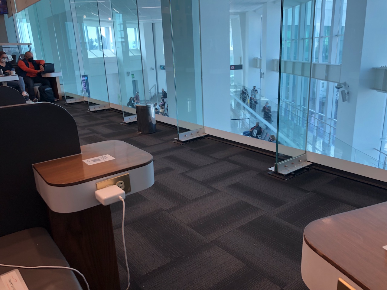 Nach dem Besuch der Centurion Lounge war die Einrichtung von Aeromexico zunächst etwas ernüchternd. Es war wesentlich mehr Betrieb, an vielen Plätzen standen benutztes Geschirr und Abfall. Nach einer Weile besserte sich die Situation schlagartig und ich konnte in Ruhe einige Bilder machen.