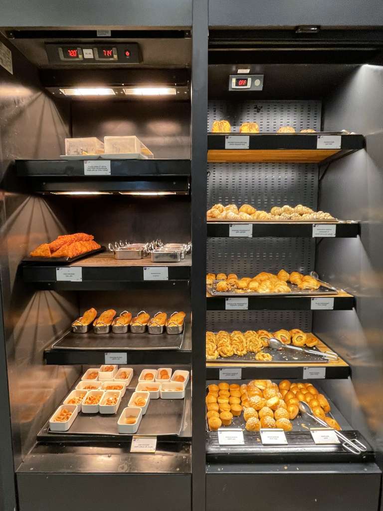 Mein Besuch fand zur Frühstückszeit statt und ich war überrascht, wie ausschweifend das Frühstücks-Büfett doch ist. Denn es gab nicht nur Backwaren in großer Vielfalt, sondern auch diverse warme Optionen. Dazu wurden am Büfett auch diverse Salate und Obstsorten geboten. Statt dem gekonnten Griff zum Bier zu frönen, können sich Gäste auch an diversen Sandwiches und Joghurts bedienen.