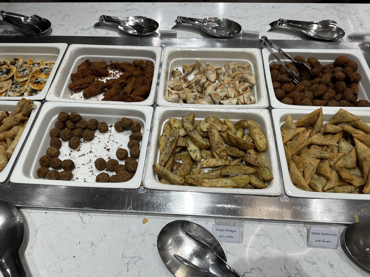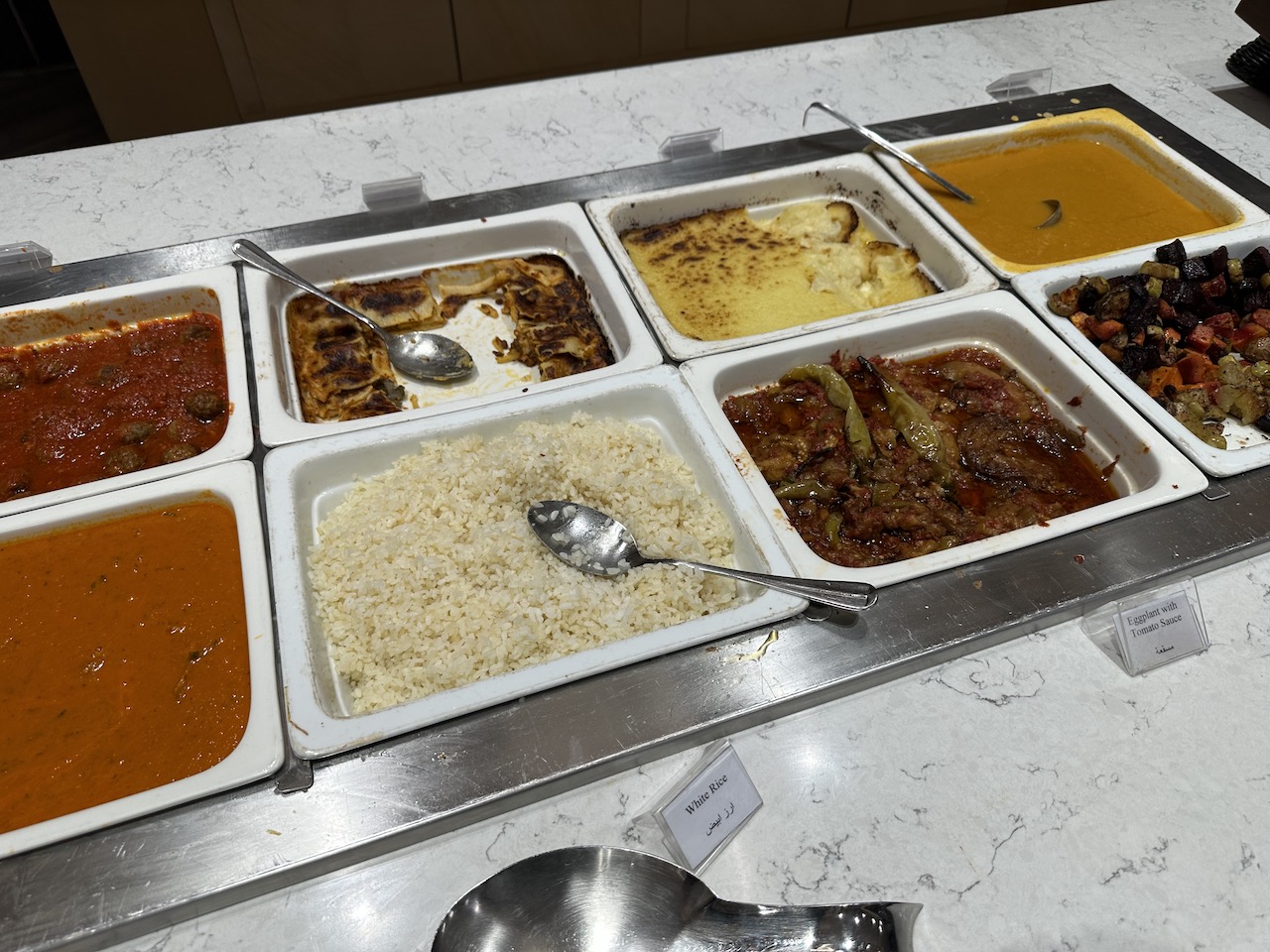 Darunter auch einige arabische und vegetarische Mahlzeiten sowie Obst und Dessert.