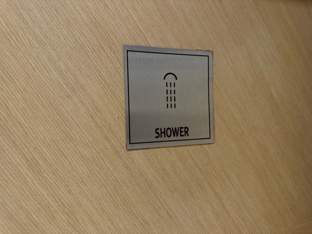Es liegen einige wenige Zeitschriften aus. Neben den sauberen Waschräumen sind auch Duschen.