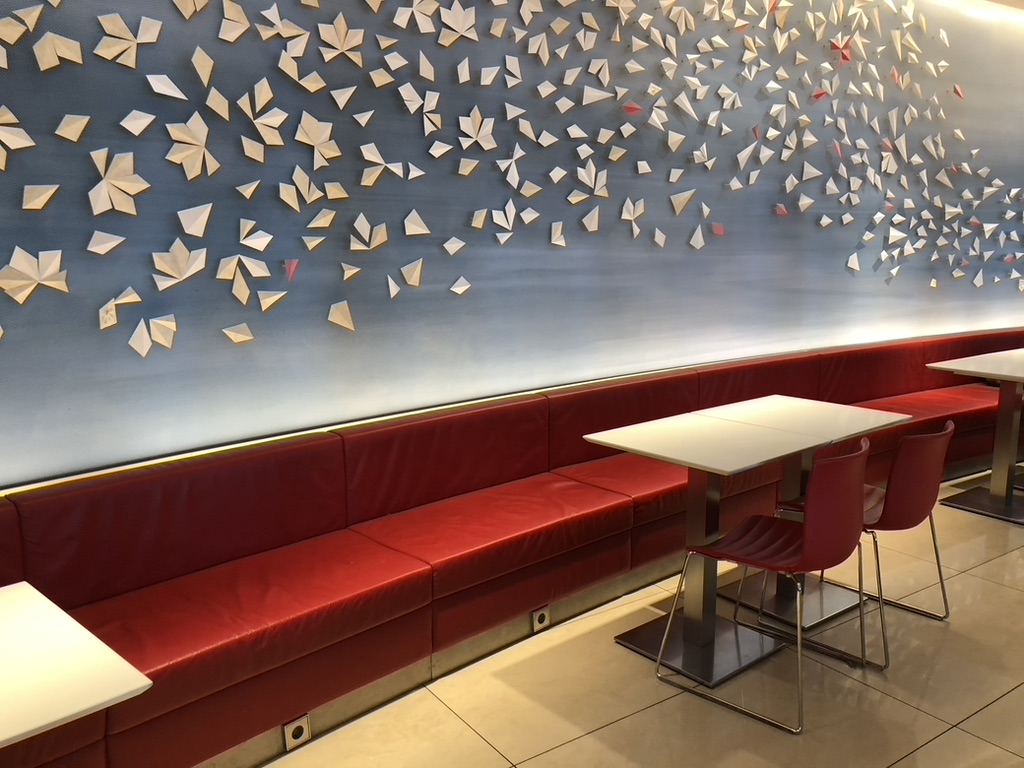 Mir gefällt die Maple-Leaf-Lounge auch richtig gut, auch wenn das Essen nicht der Kracher ist. Aber man sitzt sehr nett, und für ein Glas Prosecco ist immer Platz. Es stimmt aber: Erst wenn die AC-Flüge abgegangen sind (am Vormittag), wird es schön leer.