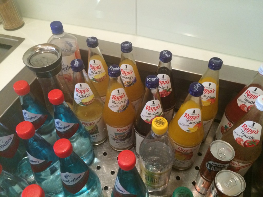 Findet man in den Lufthansa Lounges gewöhnlich Apfel-, Orangen- und Tomatensaft, hatte Air Canada Ananas-, Maracuja-, Mango-, Cranberry-, und Tomatensaft. Das war überraschend, aber nicht negativ.