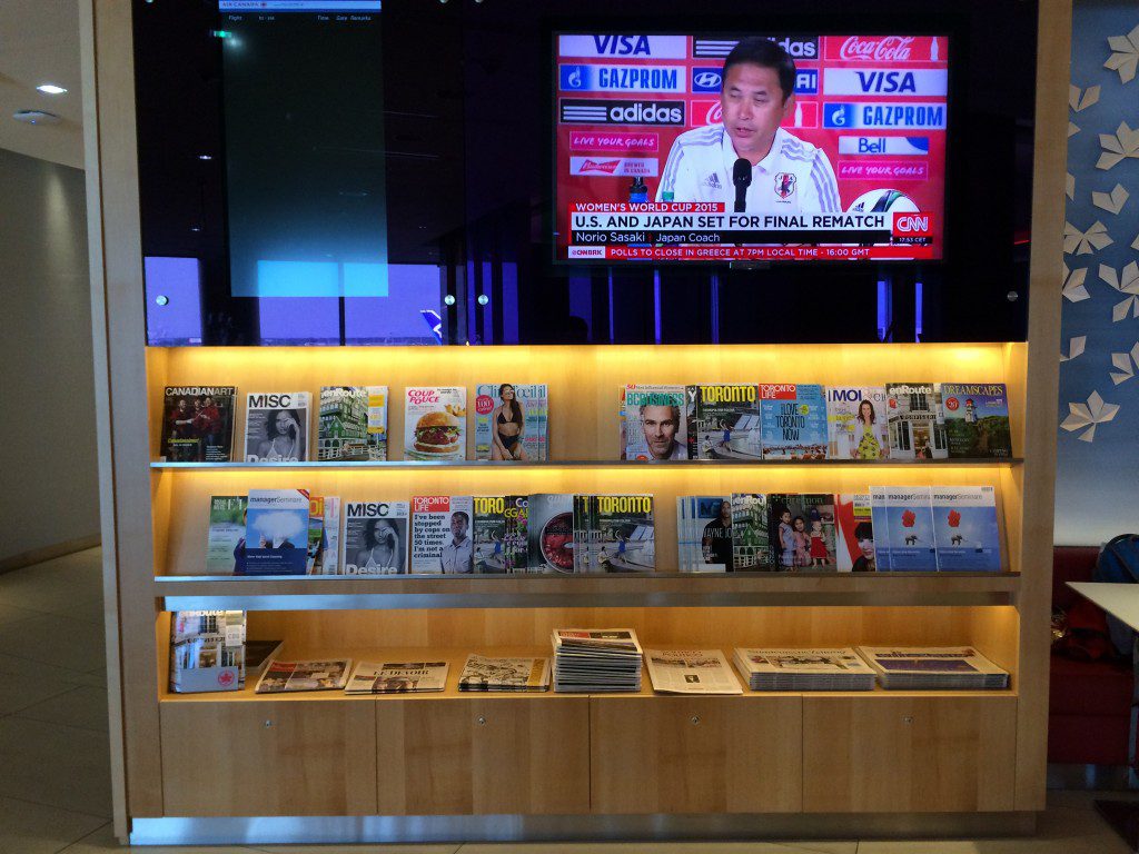 In der Lounge gab es einige kostenlose Zeitungen und Magazine. Da es die Air Canada Lounge war, auch einiges in französischer und englischer Sprache.