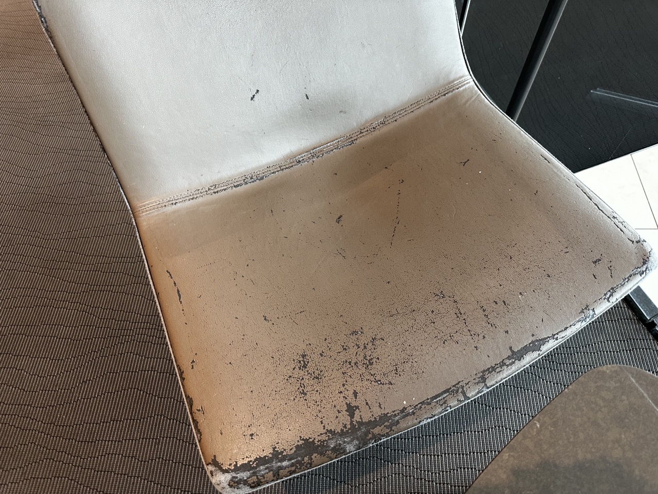 Eine Seite der Lounge verfügt über eine riesige Fensterfront und gestattet Blicke auf das Vorfeld. Es stehen unterschiedliche Sitzmöglichkeiten zur Verfügung, viele sind schon stark abgenutzt.