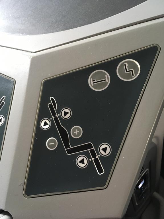 Zwischen den Sitzen befindet sich eine Ablagefläche sowie die Controller für die Sitzeinstellungen. Unterhalb der Armlehne ist ein Staufach für Zeitungen sowie der Controller für das Entertainment System. Schräg hinter den Sitzen befindet sich eine Ablagefläche sowie eine Steckdose mit dem Anschluss für die Kopfhörer.