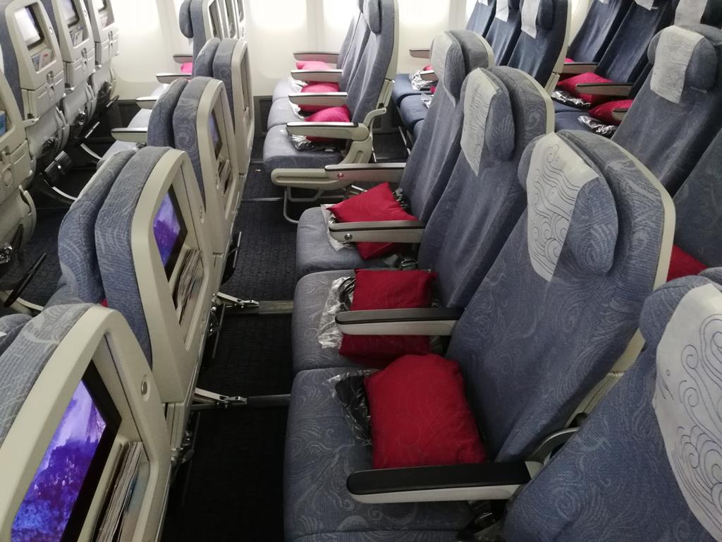 Davor liegt die Premium Economy. Auch diese ist in einer 3-4-3 Bestuhlung verbaut. Großer Pluspunkt ist der Sitzabstand von 36-38 Zoll, der im Gegensatz zur Economy deutlich gewachsen ist.