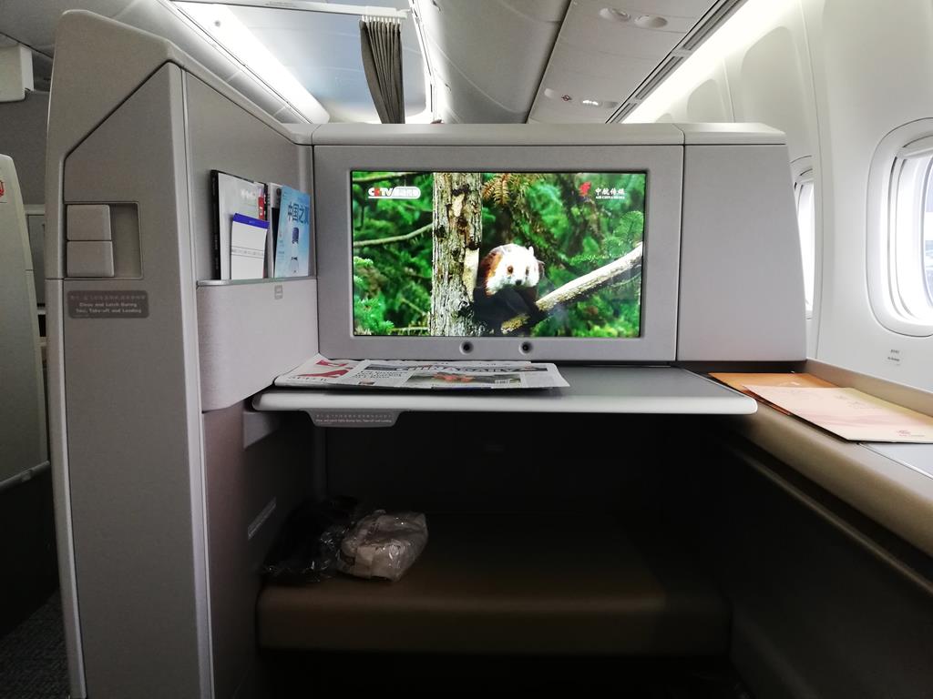 Ich muss ehrlich sagen, dass ich nicht genau wusste, was ich von der Air China First Class in der Boeing 747-8 erwarten sollte. Die Kabine wirkt offen und hell und ist dabei trotzdem recht privat. Der Sitz ist leider nicht perfekt, sei es die Einstellungen als auch die Polsterung. Die Damen im Service waren aber wirklich klasse. Man versuchte wirklich alles um den Gast zu verwöhnen und sich um diesen zu sorgen. Klar gibt es eine kleine Sprachbarriere, aber die beiden Mädels waren klasse. Wir haben uns beide sehr wohl gefühlt.