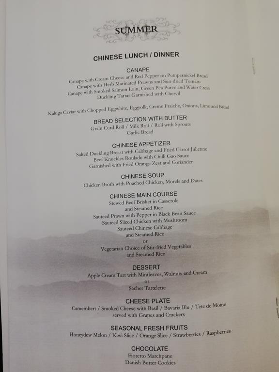 Für meine Mutter sollte es das westliche Menü, für mich das chinesische sein. Die Kommunikation auf Englisch war zwar gut, aber stellenhaft doch etwas stockend. So wurden uns letzten endlich beide Menüs serviert.