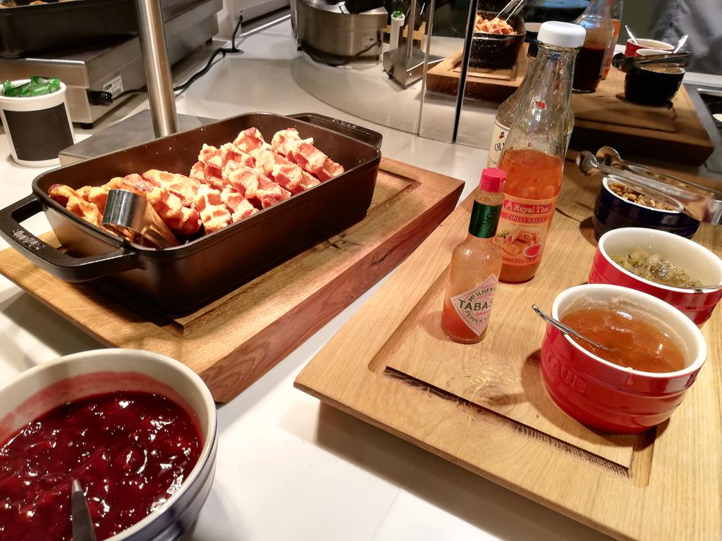Im Anschluss gab es die Entenbrust mit „Rindshaxe“. Beides war lecker, letzteres definitiv von der scharfen Sorte. Dazu wurde eine Auswahl an Brot gereicht.