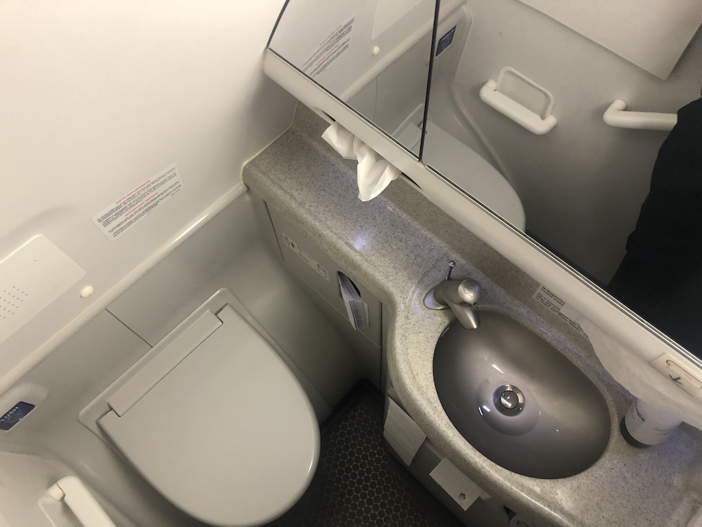 Allmählich verließen wir die Reiseflughöhe, aus dem Cockpit kam noch das aktuelle Wetter für Frankfurt. Ich wagte noch einen Blick in den Waschraum, die Flugbegleiter bereiteten langsam alles für die Landung vor.