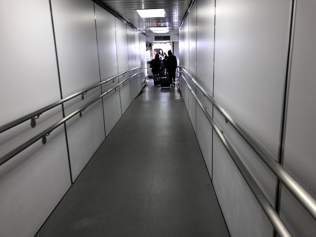 Dort war an diesem Morgen nichts los, weniger als zehn Minuten nach dem Ausstellen der Bordkarte war ich in der Galdos VIP Lounge. 30 Minuten vor Abflug machte ich mich auf den Weg zum Gate, der Einsteigevorgang lief bereits. Passagiere wurden nach Gruppen aufgerufen, Business-Gäste konnten am separaten Eingang jederzeit in das Flugzeug einsteigen.