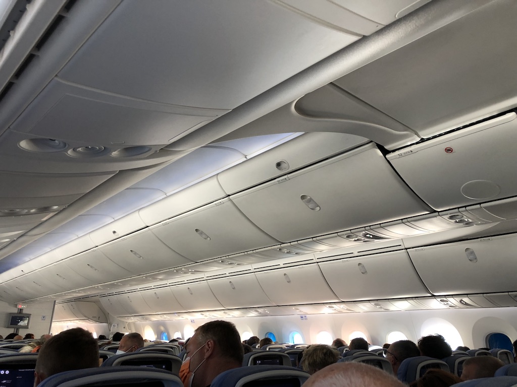Die Schlangen waren auffällig lang, meine Vermutung dass der Dreamliner beinahe ausgebucht sein könnte bestätigte sich später. Ich hatte bereits online eingecheckt und die Bordkarten auf dem Smartphone, dennoch „mogelte“ ich mich zu einer Mitarbeiterin, um zu fragen ob das so passt. Diese verlangte gleich nach dem Pass und Covid-Zertifikat, tippte lange auf der Tastatur und stellte mir schließlich Papierbordkarten aus. Das Boarding sei nur damit möglich meinte sie und ich begab mich daraufhin dankbar zur Sicherheitskontrolle.
