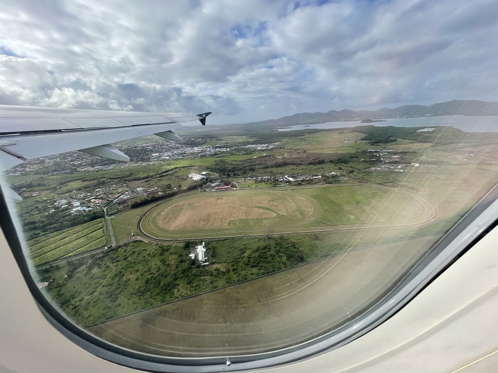 Der Flug startet in Pointe-à-Pitre und erreicht nach gut 20 Minuten Fort-de-France auf Martinique. Da das Flugzeug auf dieser Strecke nicht richtig hochsteigt, hat man sehr schöne Blicke von oben auf Dominica.