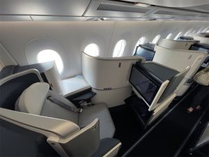 Air France A350 Economy Class | Blick in die Business Class