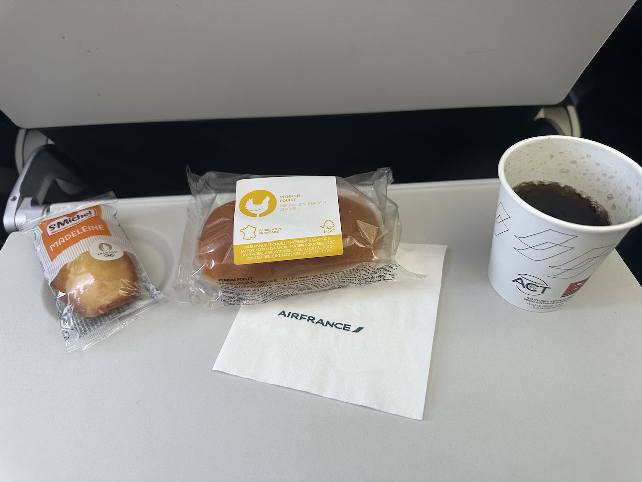 Anschließend wurden Getränke inkl. Kaffee und Tee ausgeschenkt. Air France gehört noch zu den wenigen Airlines in Europa, die auch auf kurzen Flügen zumindest eine Kleinigkeit anbieten.