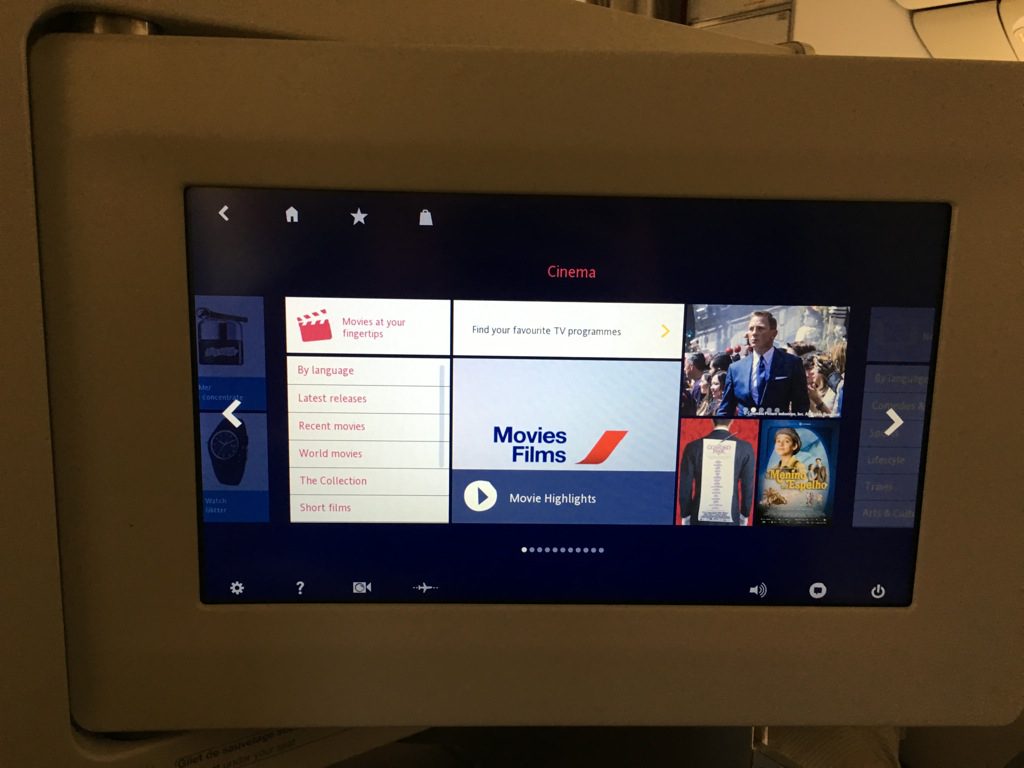 Der Monitor des Inflight Entertainment lässt sich über eine kleine Fernsteuerung mit Touchscreen bedienen. Was mir hierran besonders gut gefällt, ist dass man auf der Fernsteuerung auch andere Dinge, wie zum Beispiel die moving map anzeigen kann während man einen Film schaut.