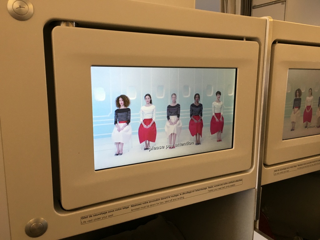 Der neue Air France Business Class Sitz, welcher in einigen Boeing 777-300er verbaut ist und nach und nach in allen Boeing 777 der Air France Flotte verbaut werden soll, ist ein herringbone Sitz in einer 1-2-1 Bestuhlung. Die Fensterplätze sind dabei dem Fenster hin zugewandt und die Mittelsitze zueinander. Die Sitze sind dabei sehr privat und man nimmt recht wenig von seinem Umfeld war. Dies ist sicherlich toll, wenn man alleine reist. Wenn man allerdings wie wir als Paar unterwegs ist, ist dies etwas unglücklich. Die Mittelsitze sind sehr gut voneinander abgeschirmt, sodass wir einen Fenster- und einen Mittelsitz in der Mini- Kabine hinter der First Class gewählt haben. Bei diesen Sitzen ist es wenigstens möglich miteinander zu sprechen ohne aus dem Sitz aufzustehen.
