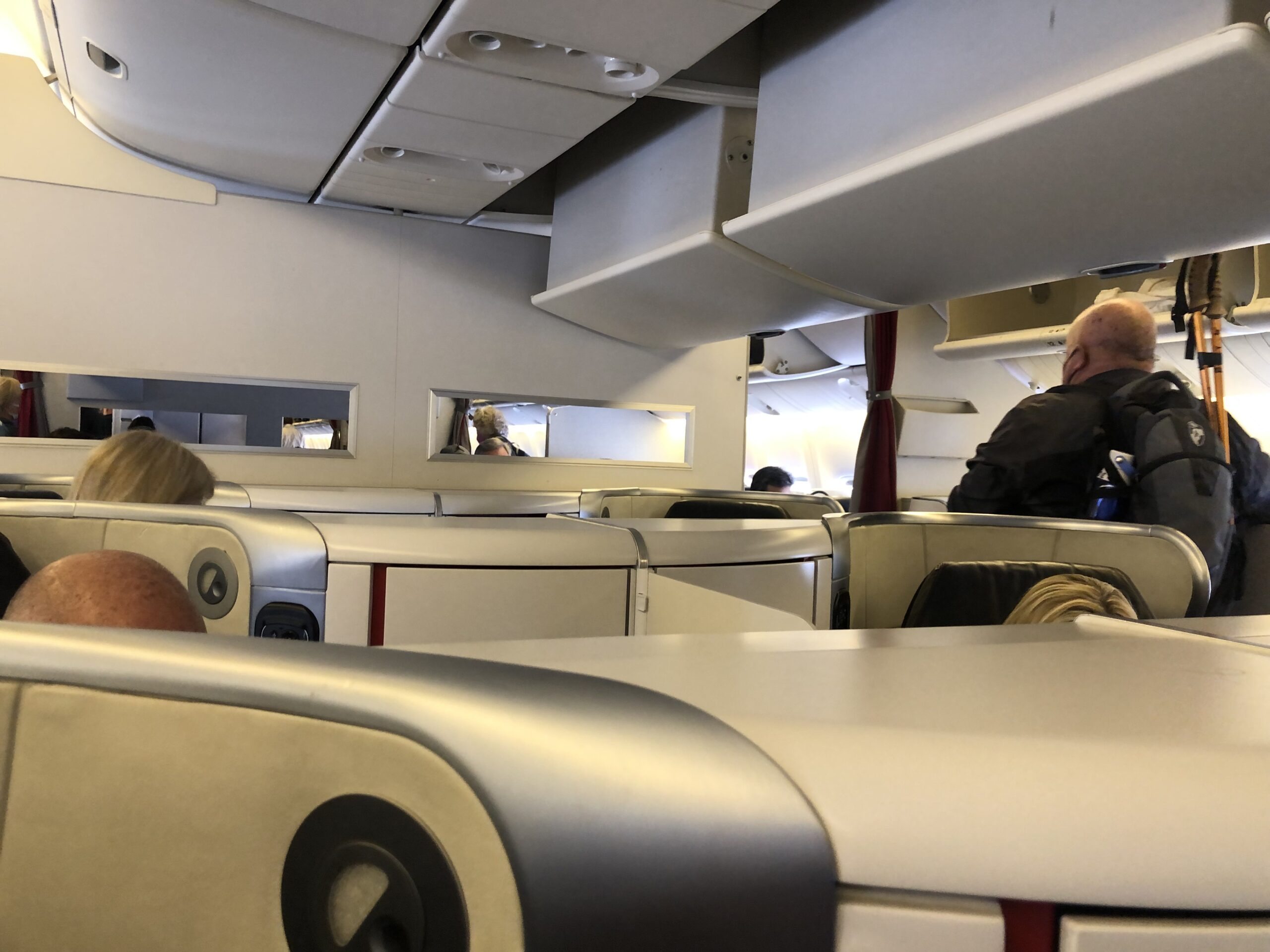 Der erste Eindruck war ganz gut, eine gewisse Abnutzung konnte man aber hier und da erkennen. Die B777-200 ist ohne First Class konfiguriert, die Business Class war in zwei Compartments aufgeteilt.