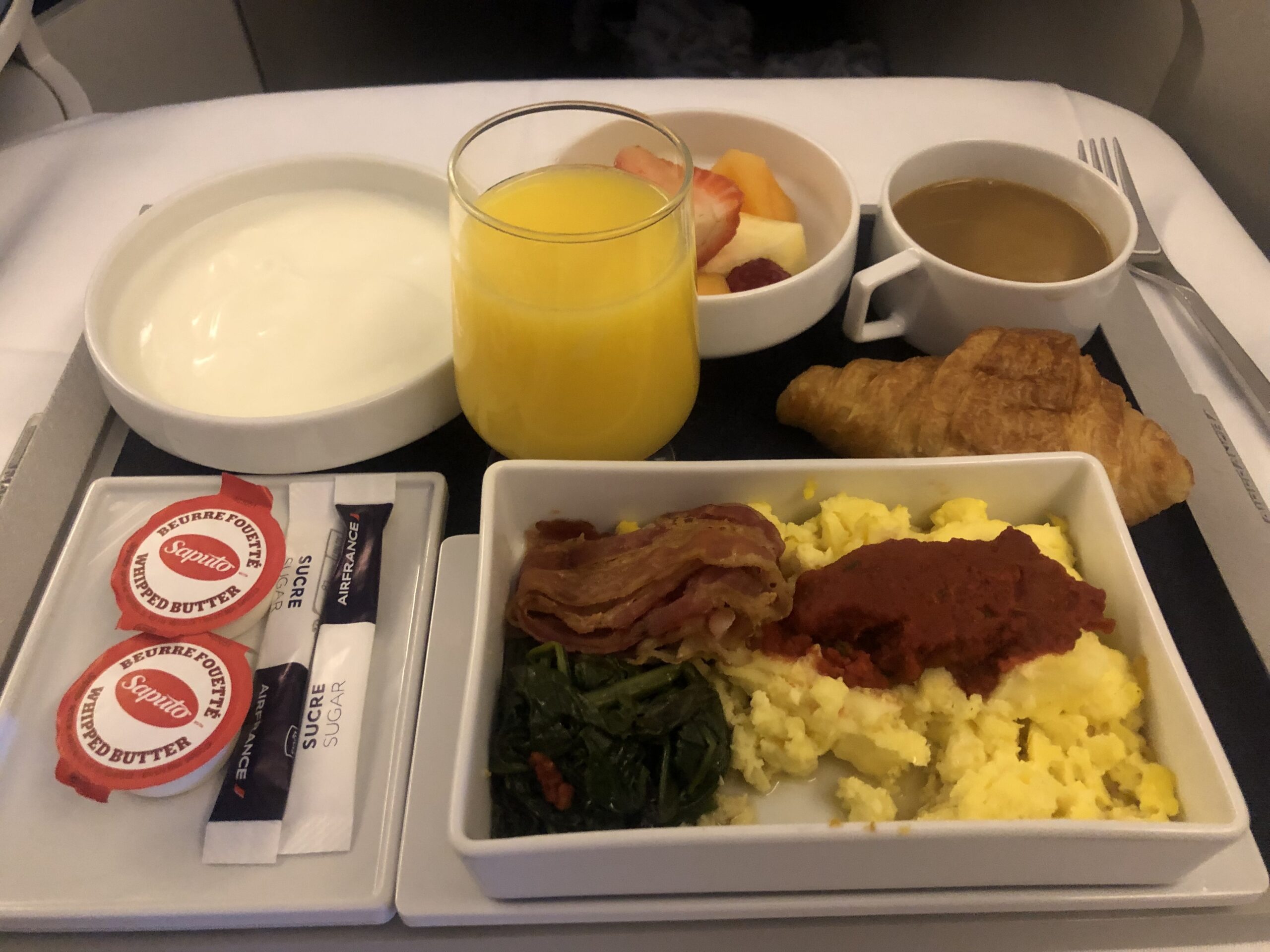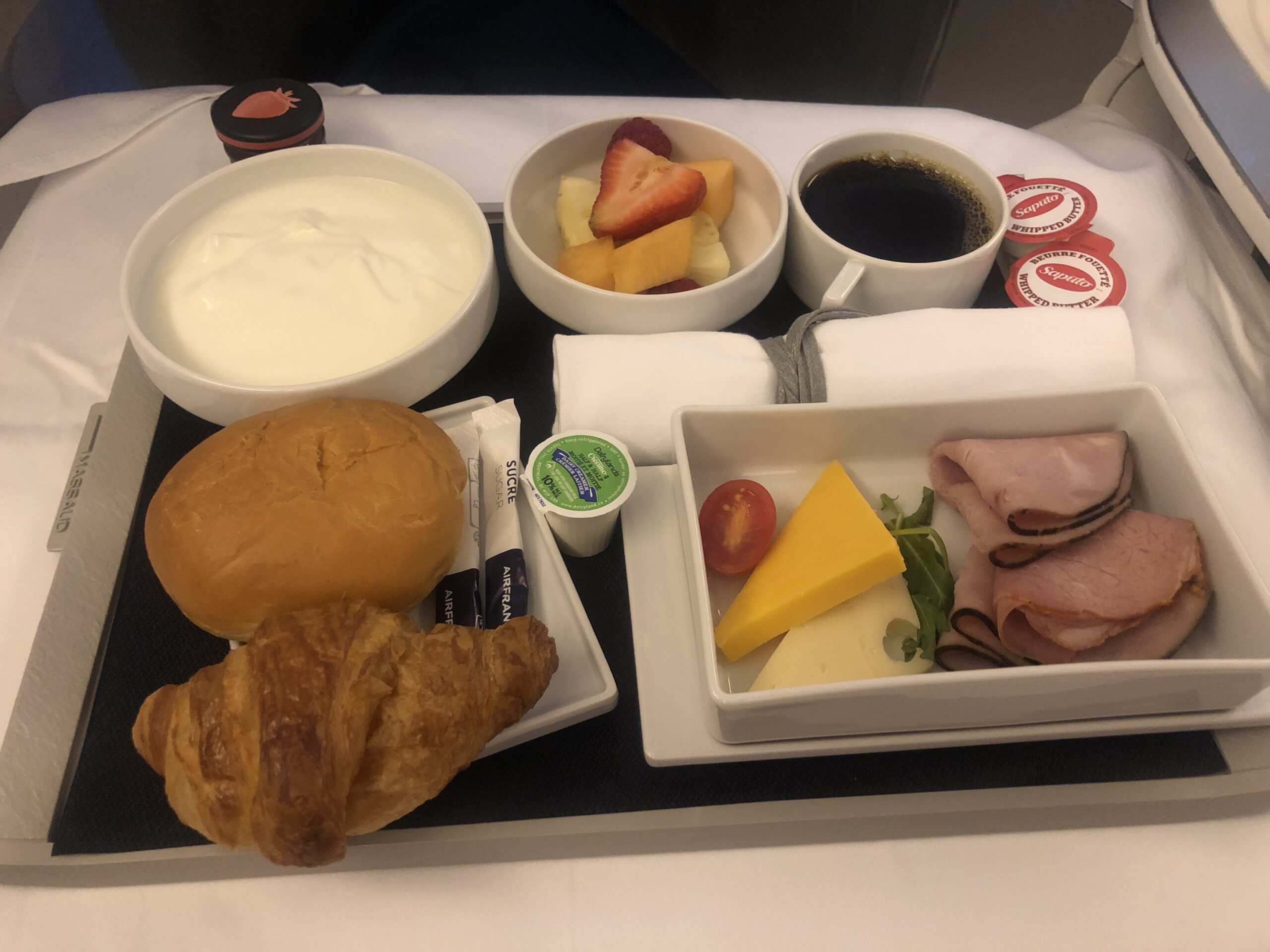 Das Flugzeug war zwar schon etwas älter und die Einrichtung nicht ganz up to date. Eine motivierte Crew bereitete uns aber ein schönes Flugerlebnis. Das Essen hatte zwar einige Schwächen aber in einem Flugzeug sind die Möglichkeiten dann doch etwas begrenzt. Dennoch könnte man also französische Airline einen würzigeren Käse oder besseres Croissant auftischen.