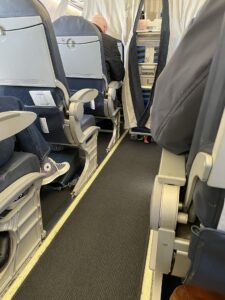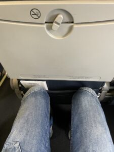 Der Sitzabstand ist natürlich nichts für einen erholsamen Flug und ich hatte beiden Male das Glück, einen freien Nebensitz zu haben. Das macht das Sitzen für große Menschen dann deutlich bequemer.