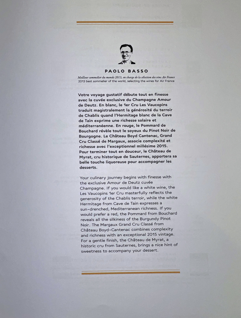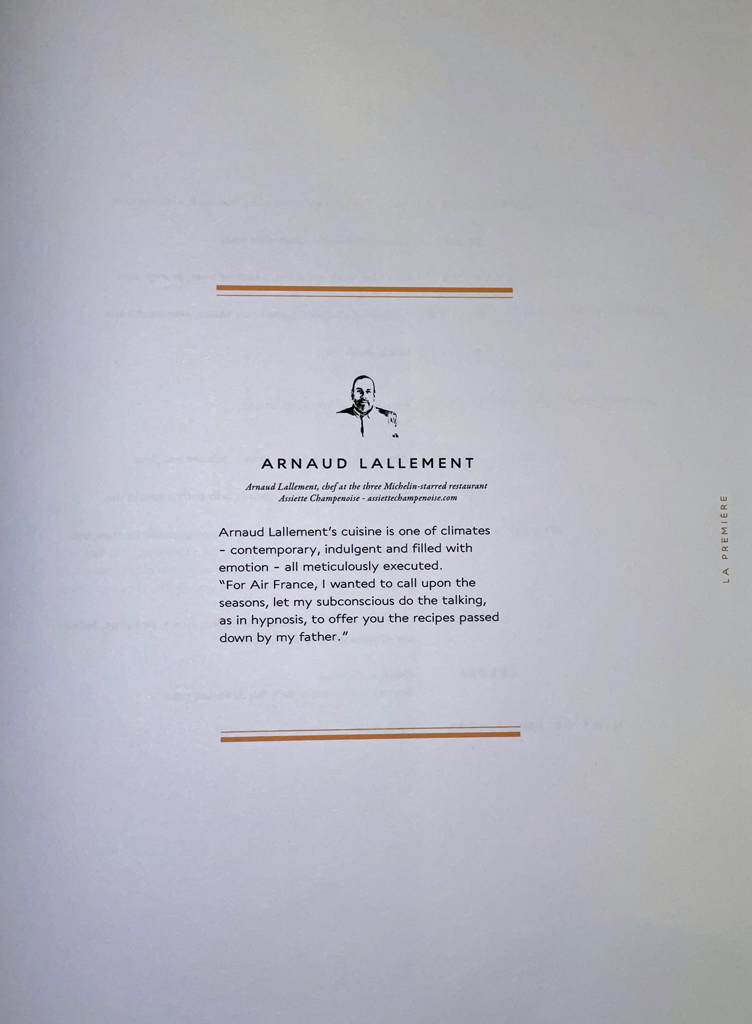 Der französische Koch Arnaud Lallement, dessen Restaurant sich mit drei Michelinsternen ziert, hat das Menü für diesen Flug konzipiert.