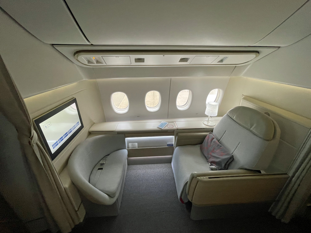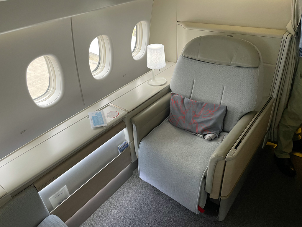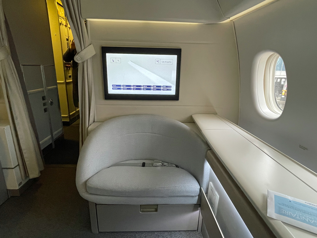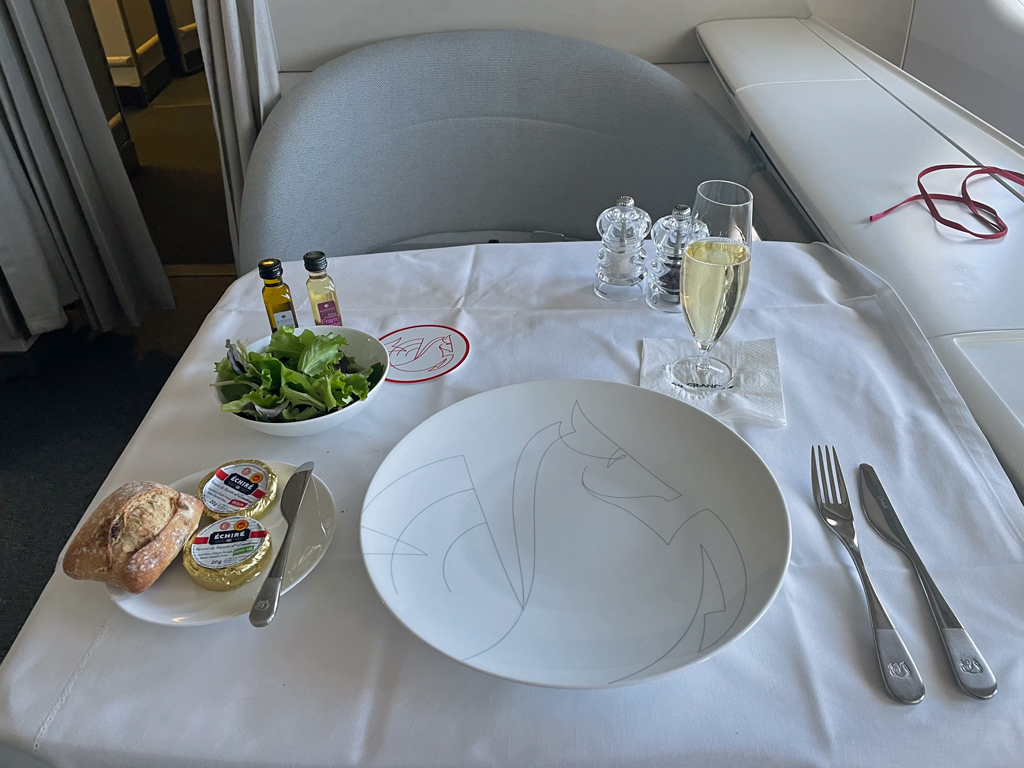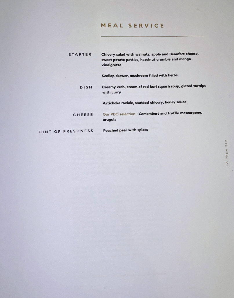 Was ein Flug. Das meine ich Ernst, auch wenn es in der Review vielleicht nicht so durchklingt. La Premiere ist eine First Class auf absolutem Top-Niveau. Der Sitz ist bequem und das Bett ist fantastisch. Das Essen ist richtig, richtig gut. Der Service ist tadellos, aber nicht ohne leicht Verbesserungspotenziale. Eine kurze Einweisung in den Sitz oder ein Hinweis auf die Schlappen in der Schublade hätten nicht geschadet. Auch hätte die zweite Mahlzeit nach meinem Empfinden früher abgeräumt werden können.