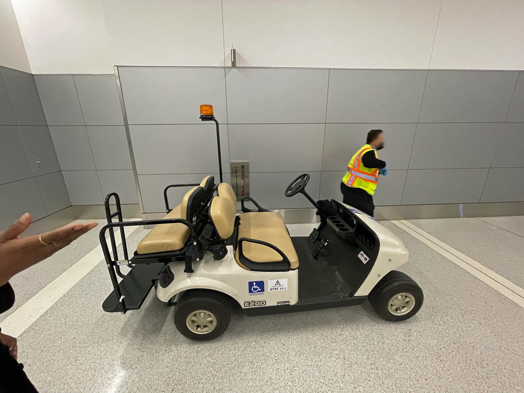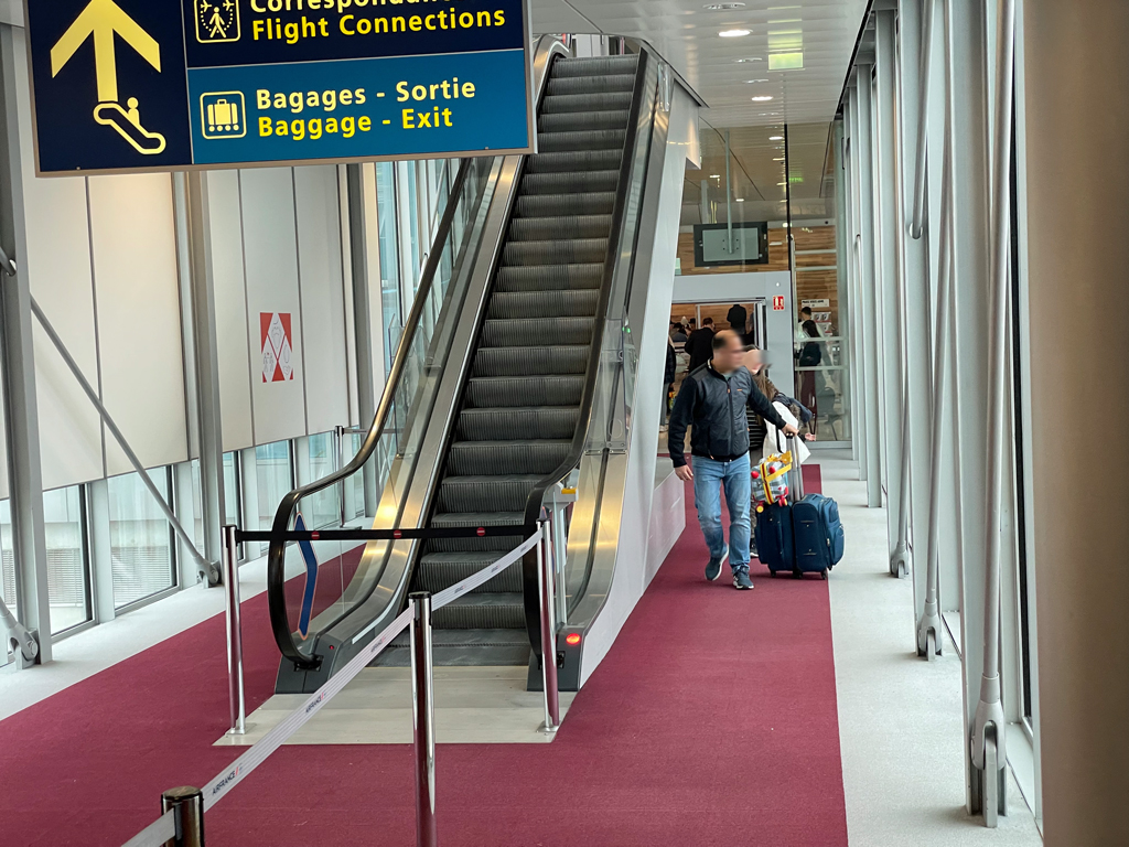 Die Kabinenmanagerin und der Flugbegleiter verabschiedeten sich von den drei Reisenden und übergaben uns an zwei Begleiterinnen, die uns durch den Flughafen führen sollten.