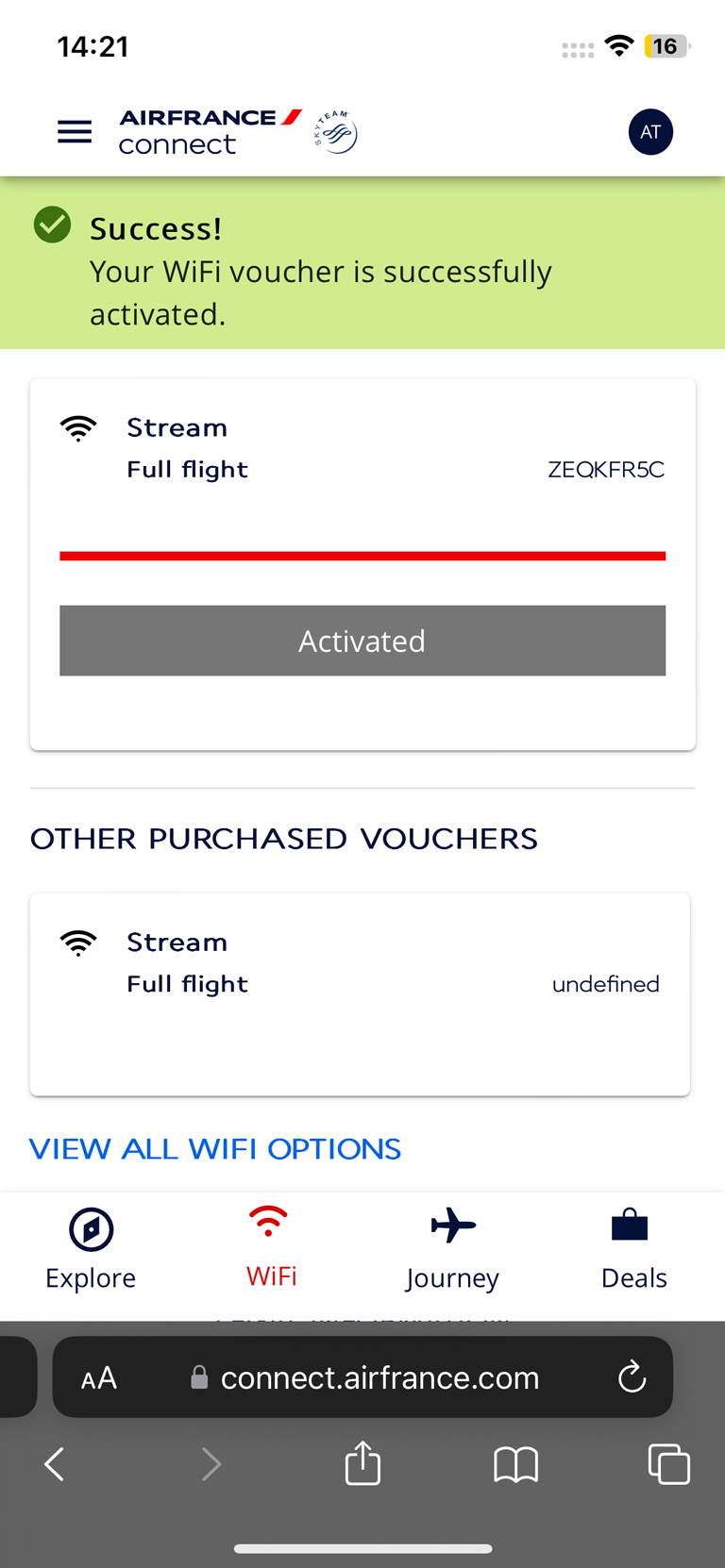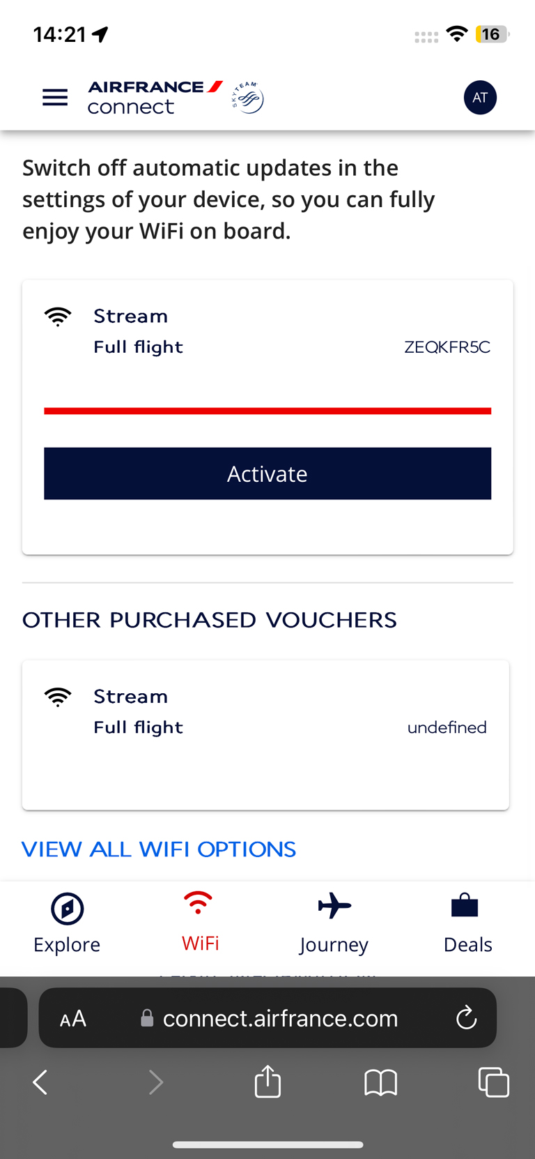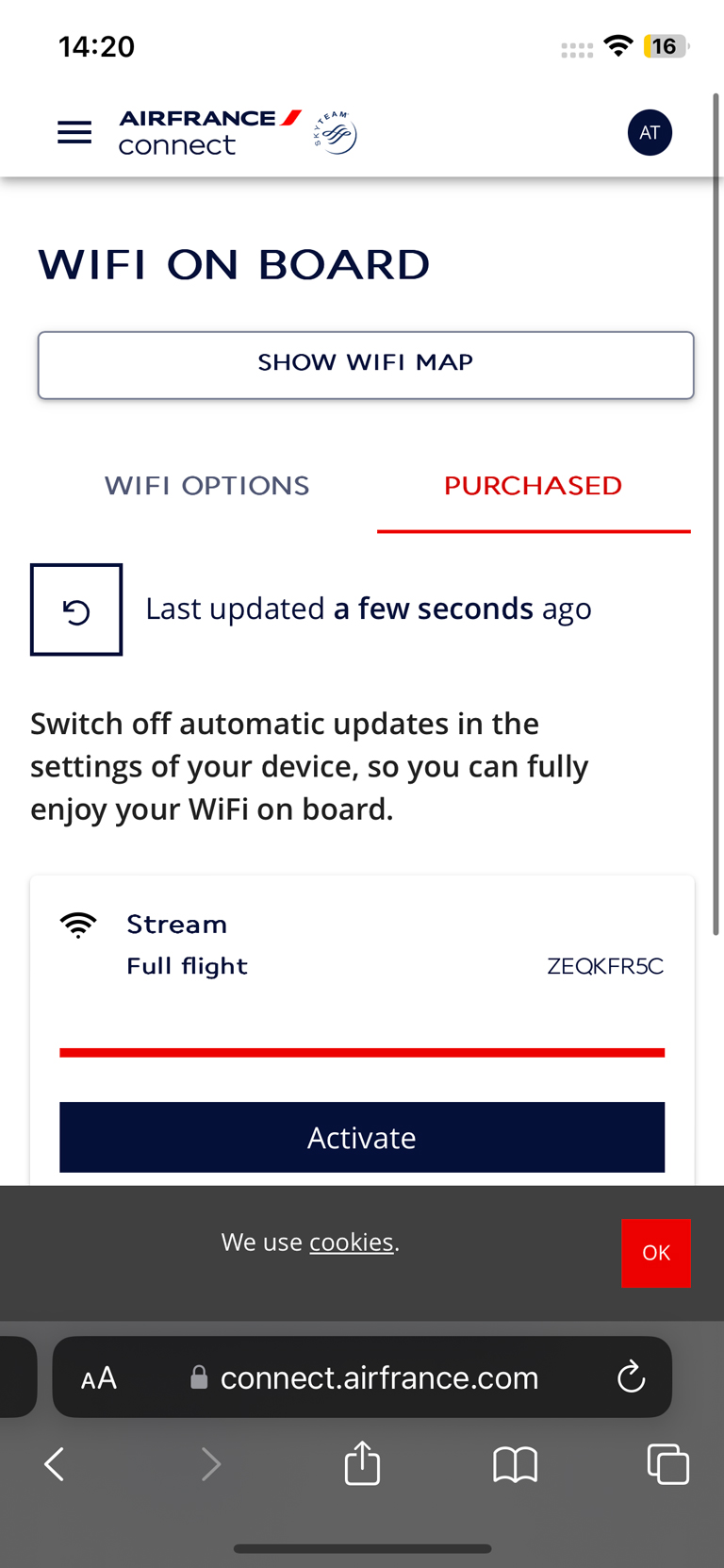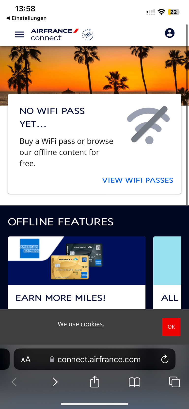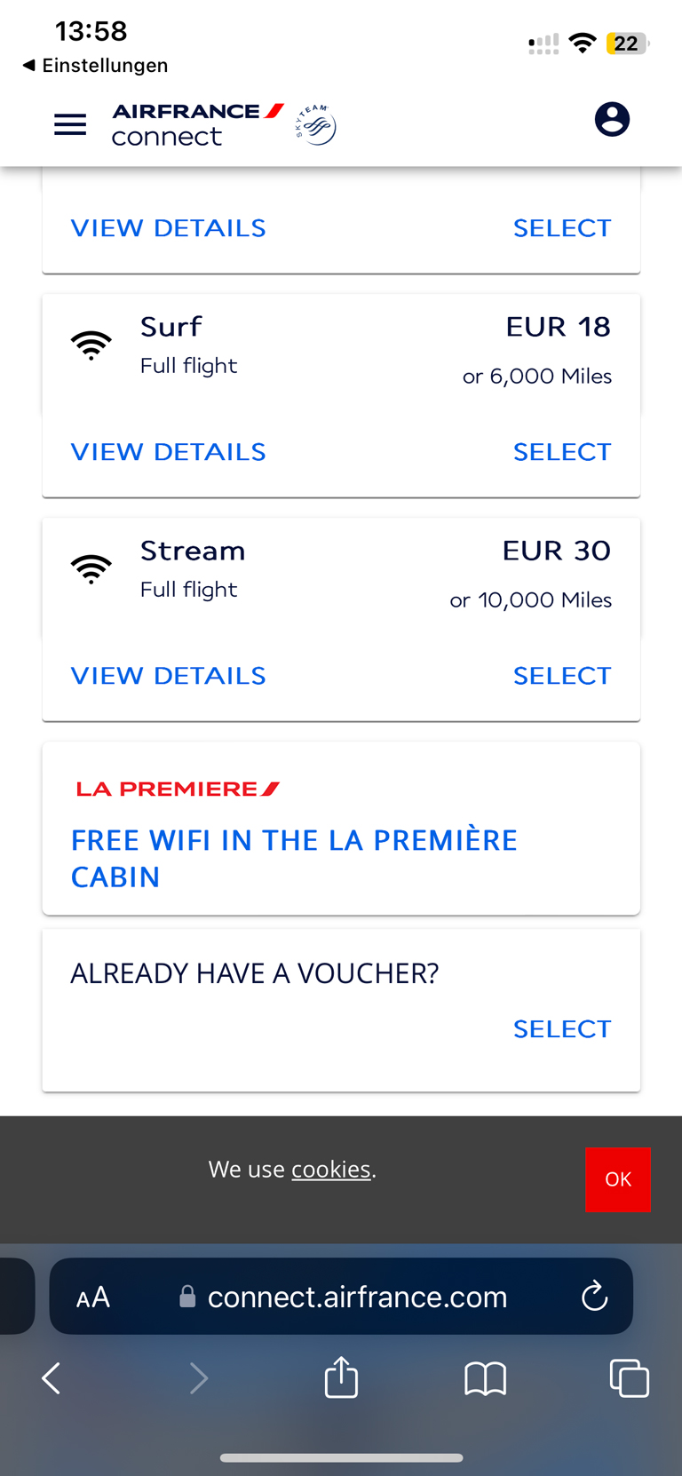 WiFi ist an Bord vorhanden und für Reisende in der La Premiere kostenfrei. Der HighSpeed Zugang für den ganzen Flug kostet sonst 30 EUR. In der ersten Klasse ist das WLAN mit beliebig vielen Geräten nutzbar. Das hat auf dem Teil des Flugs über Europa ganz wunderbar funktioniert, über Nordamerika hingegen nicht mehr.