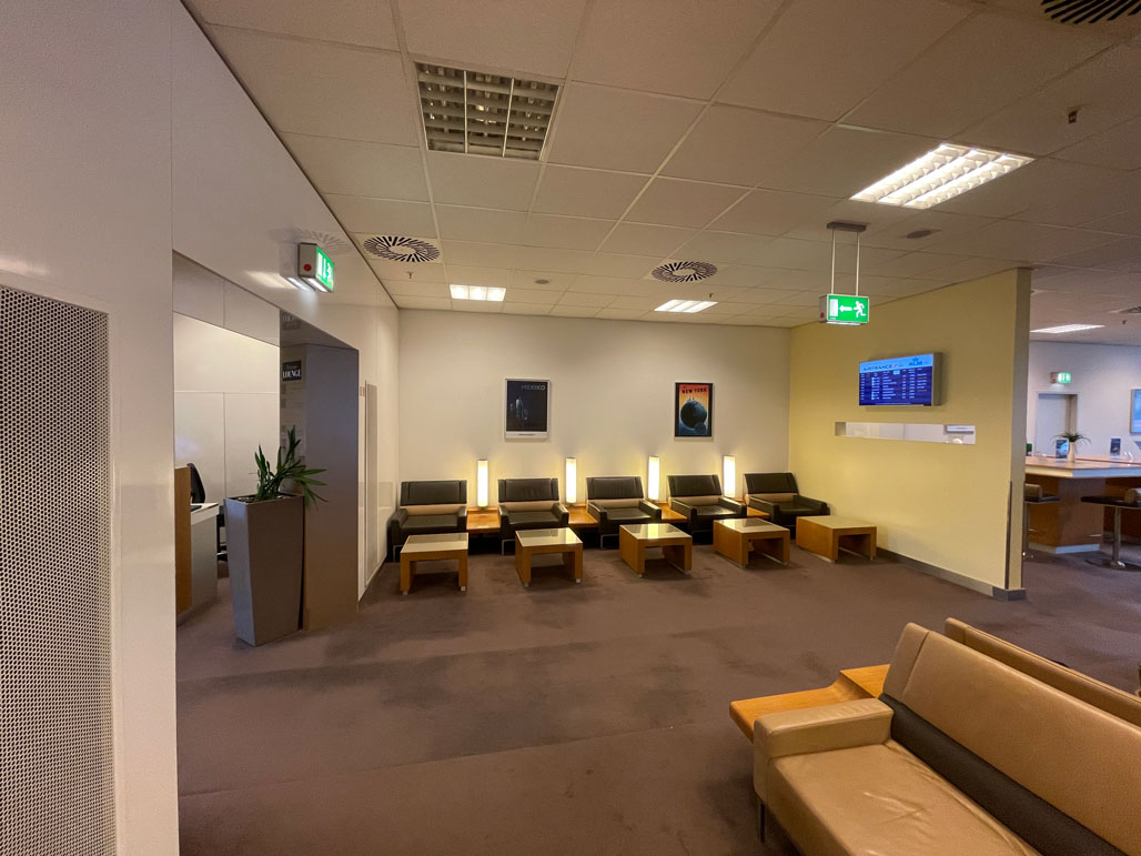 Wenn man die Lounge betritt, wird an einem kleinen Tresen links neben der Tür die Zugangsberechtigung überprüft.