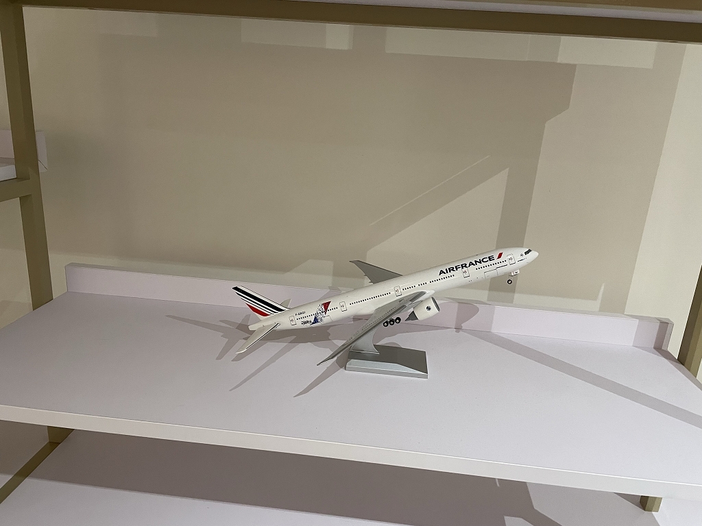 Ein großer Fernseher spielte französische Nachrichten. Im Eingangsbereich stand ein kleines Modell einer Air France 777. Und gratis WiFi gab es auch.