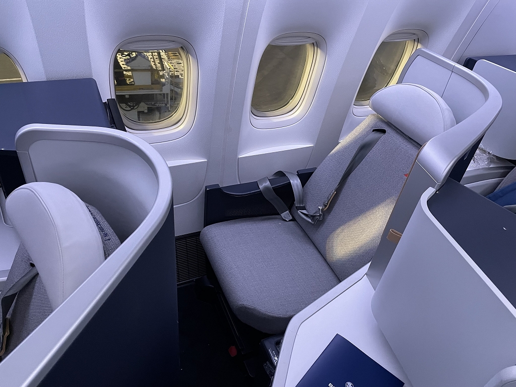 Zum Vergleich kommen hier Fotos vom Business Class Sitz im Flugzeug: