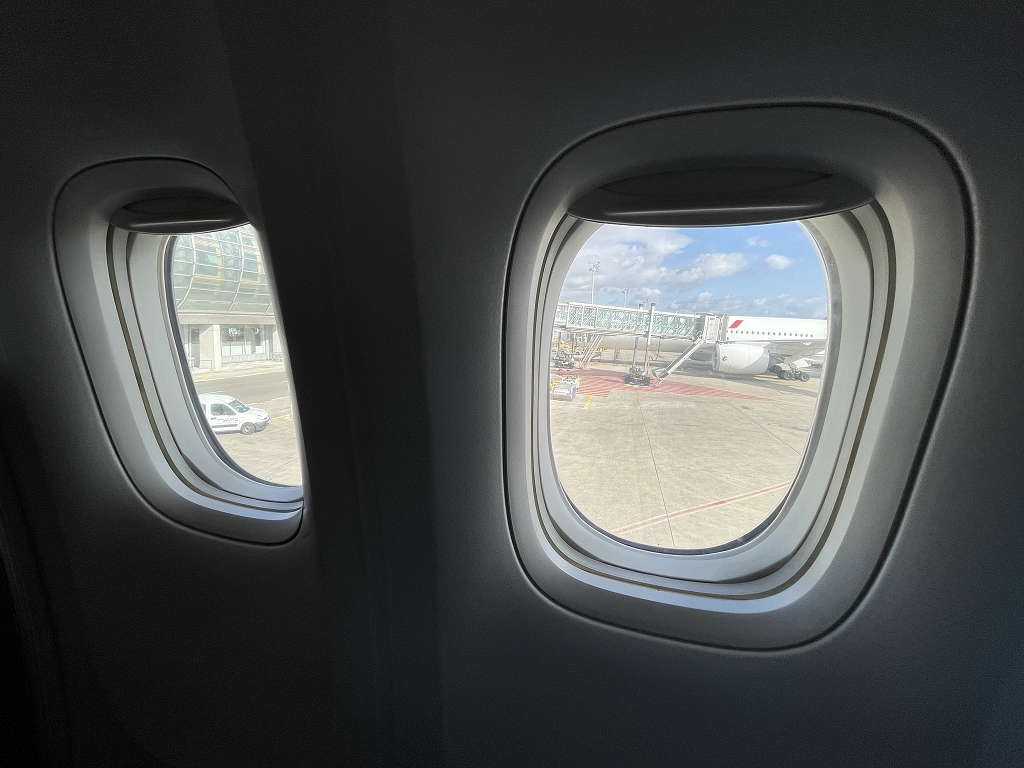 Da ich in Paris “nur” umsteigen musste, entfällt die Beschreibung des Check-Ins. Vielleicht ein Wort zum Umstieg in Paris: Die Wartezeiten an den Sicherheitskontrollen vor den Eingängen der einzelnen Gate-Bereicht im Terminal 2 können unerwartet lang ausfallen. So war es auch an meinem Flugtag. Daher erreichte ich aufgrund der etwas knappen Umsteigezeit das Gate 5 Minuten vor Boardingende und betrat als letzter Fluggast die Premium Economy.