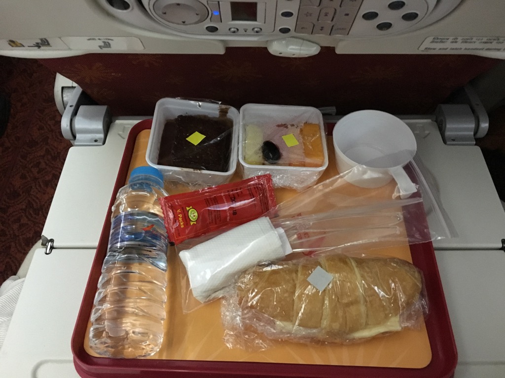 Bei diesem Service verzichtete man sogar auf eine vorherige Getränkerunde und überreichte lediglich das Tablett mit einem Sandwich, Obst und einem Kuchen. Hierauf befand sich allerdings auch eine Flache Wasser.