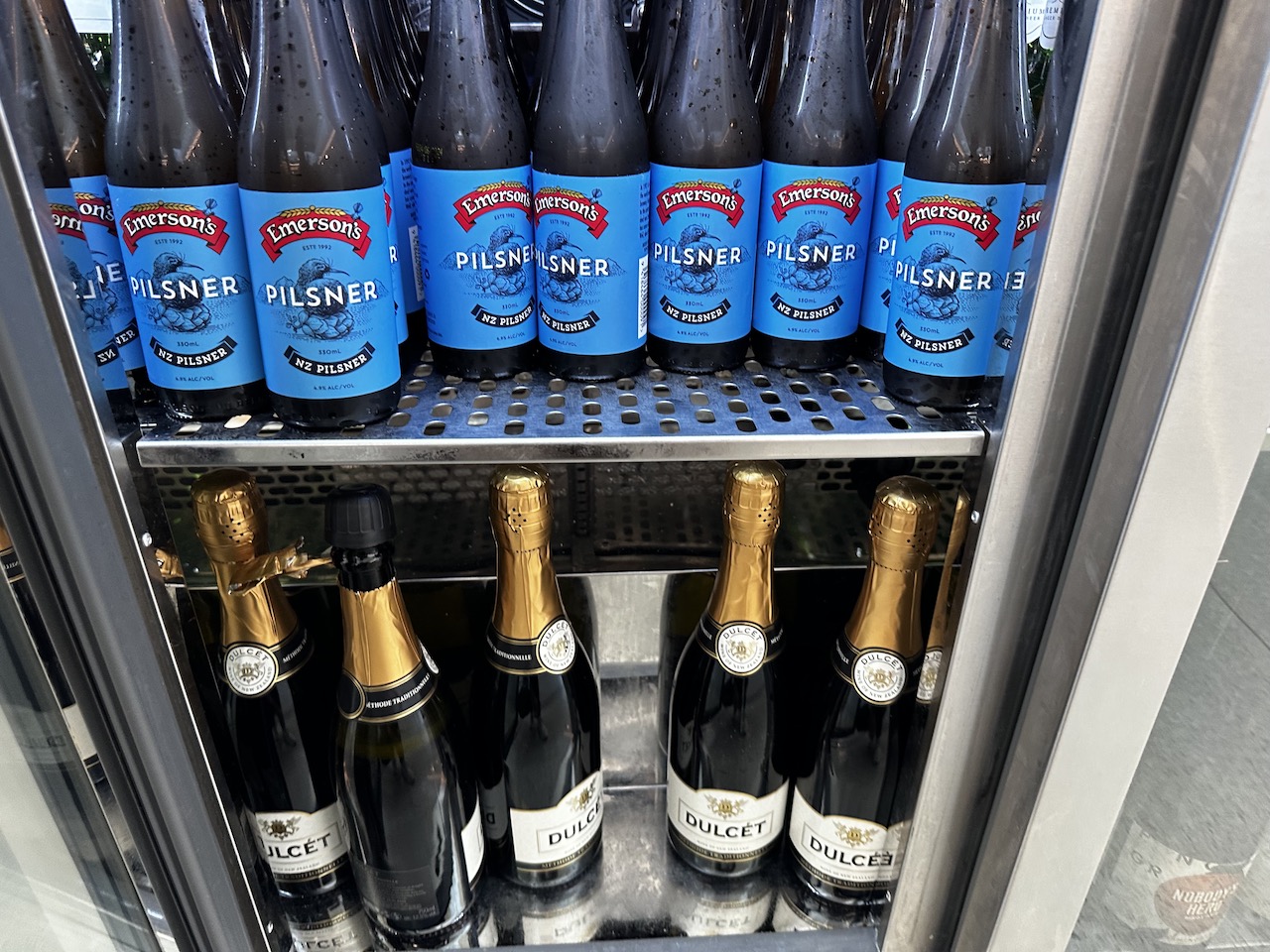 Das Getränkesortiment ist sehr breit, neben warmen Getränken und Softdrinks konnte man auch schon morgens alkoholische Getränke bekommen. Insbesondere die Weinauswahl ist breit, Sekt und alle Weine kommen aus Neuseeland.