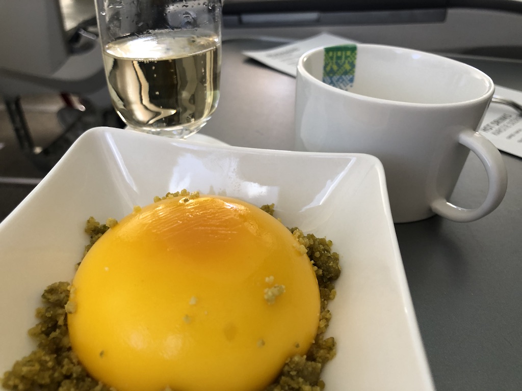 Vor dem Aperitif gab es noch heiße Tücher zur Erfrischung, die meisten Gesellschaften haben diesen Schritt als erstes beim Service in Zeiten der Pandemie gestrichen.