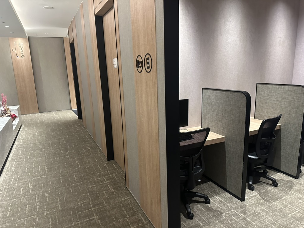 Wer sich abschotten und arbeiten möchte, kann das Business Center nutzen. Es gibt eigene Toiletten, aber keine Duschen.