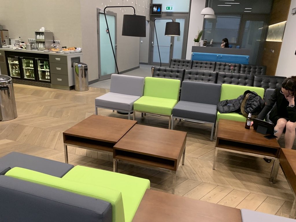 Die Airport Business Lounge in Krakau ist, ganz wie der Flughafen auch, relativ klein und grundsätzlich nur ein großer Raum. Allerdings ist diese Größe ausreichend und auch am Abend, kurz bevor die meisten Flüge abgeflogen sind, war die Lounge zwar spürbar voller, aber nicht überfüllt.
