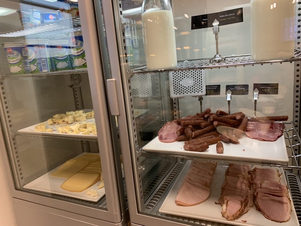 Auf dem Buffet in der Airport Business Lounge in Krakau wurde eine gute Auswahl an Getränken und Speisen angeboten. Nachdem ich seit meinem Frühstück im DoubleTree by Hilton in Krakau nichts mehr gegessen hatte, war ich besonders von dem Angebot an Speisen sehr positiv überrascht.
