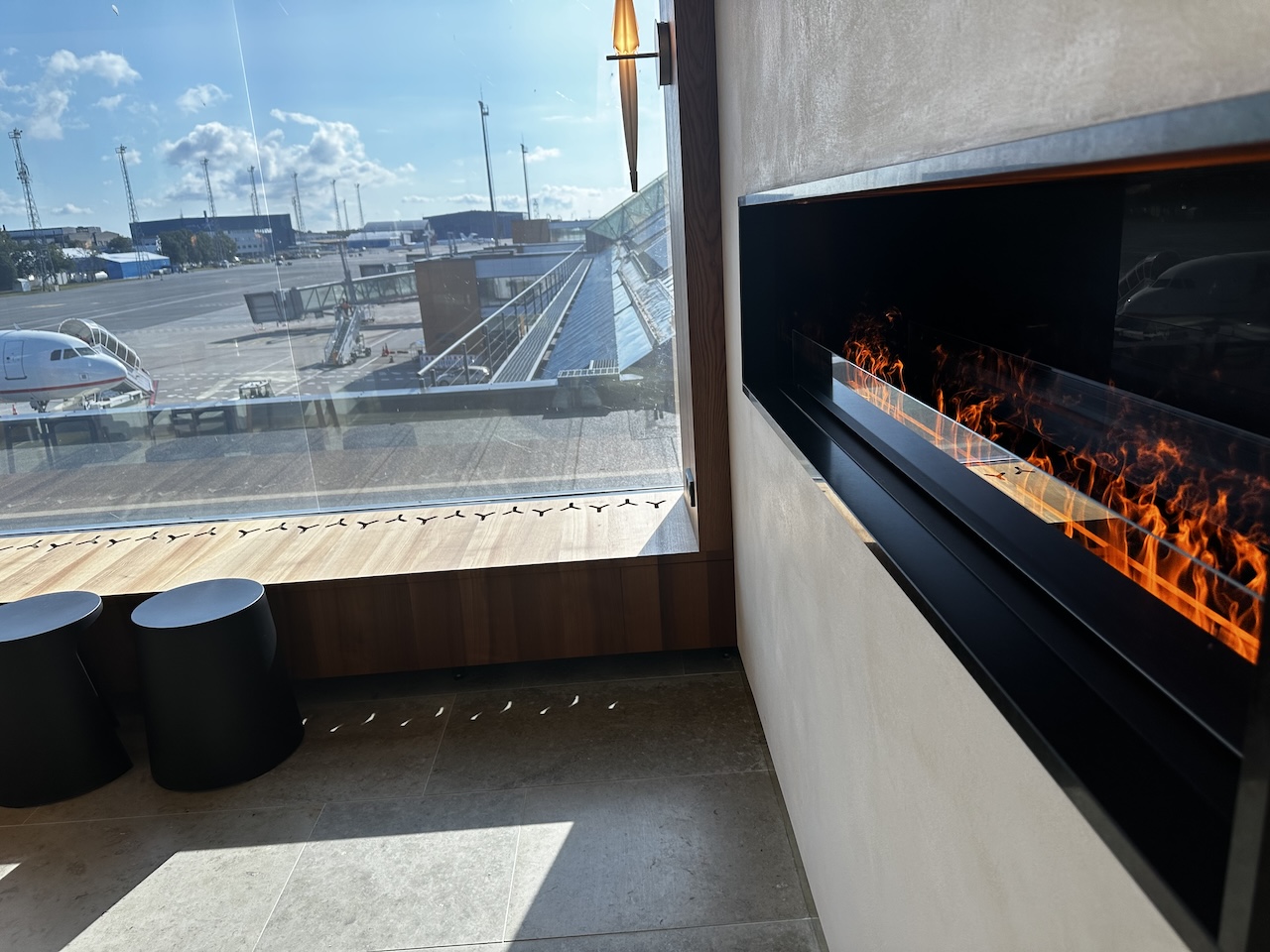 Vom Catering darf man wohl mehr erwarten, ich war aber noch satt vom Frühstück im Hotel und daher mit Kaffee und einer Zimtschnecke ganz glücklich. Wo die Lounge aber wirklich gepunktet hat, waren Einrichtung, Aussicht und die Terrasse. All das habe ich von einer Flughafen Lounge an einem kleineren Airport nicht erwartet.