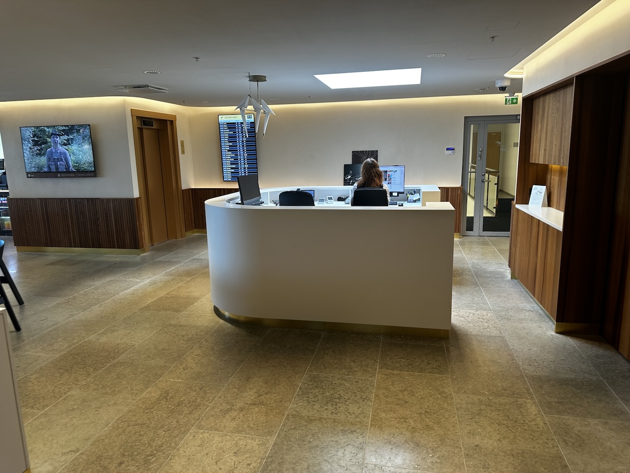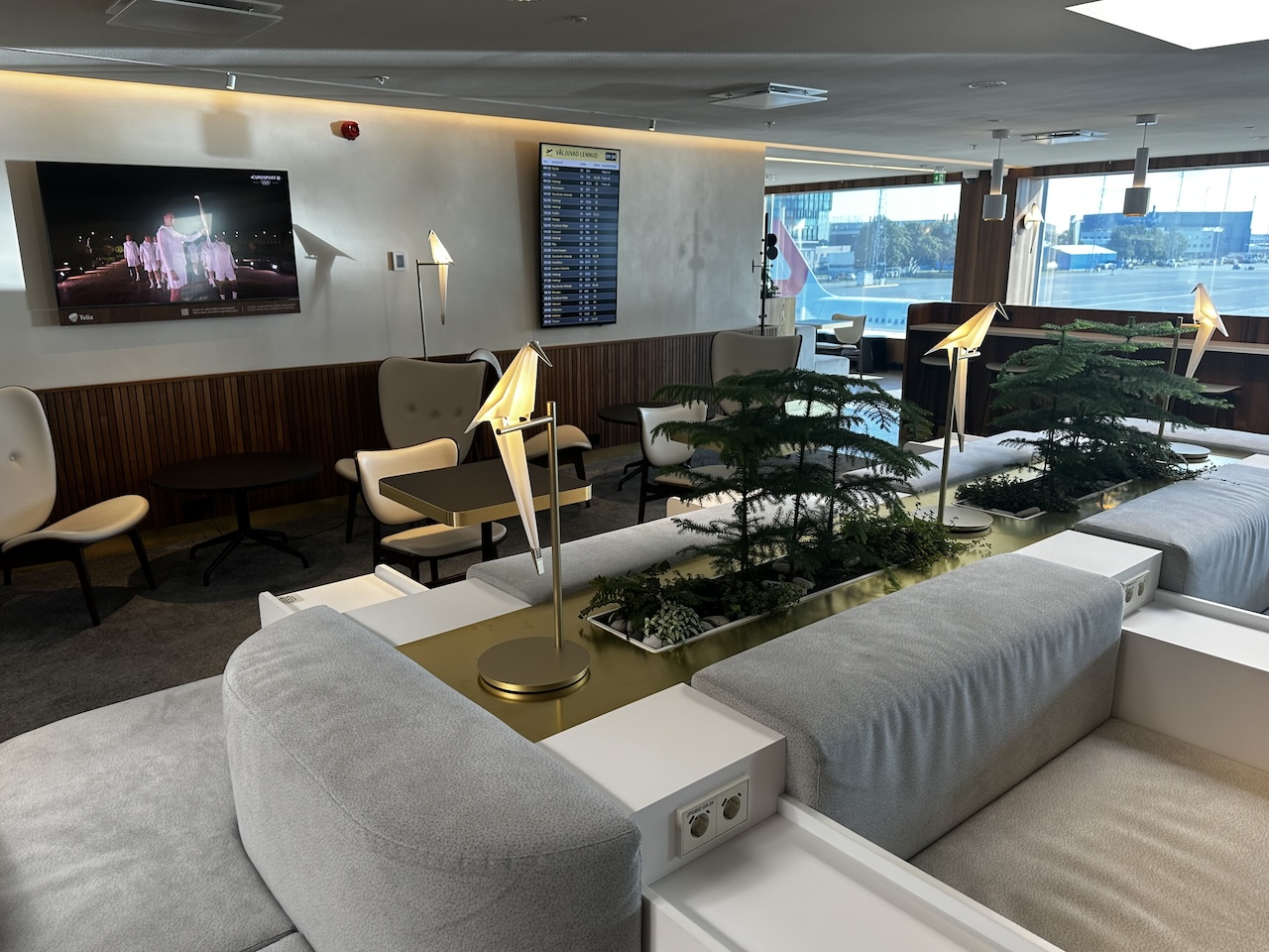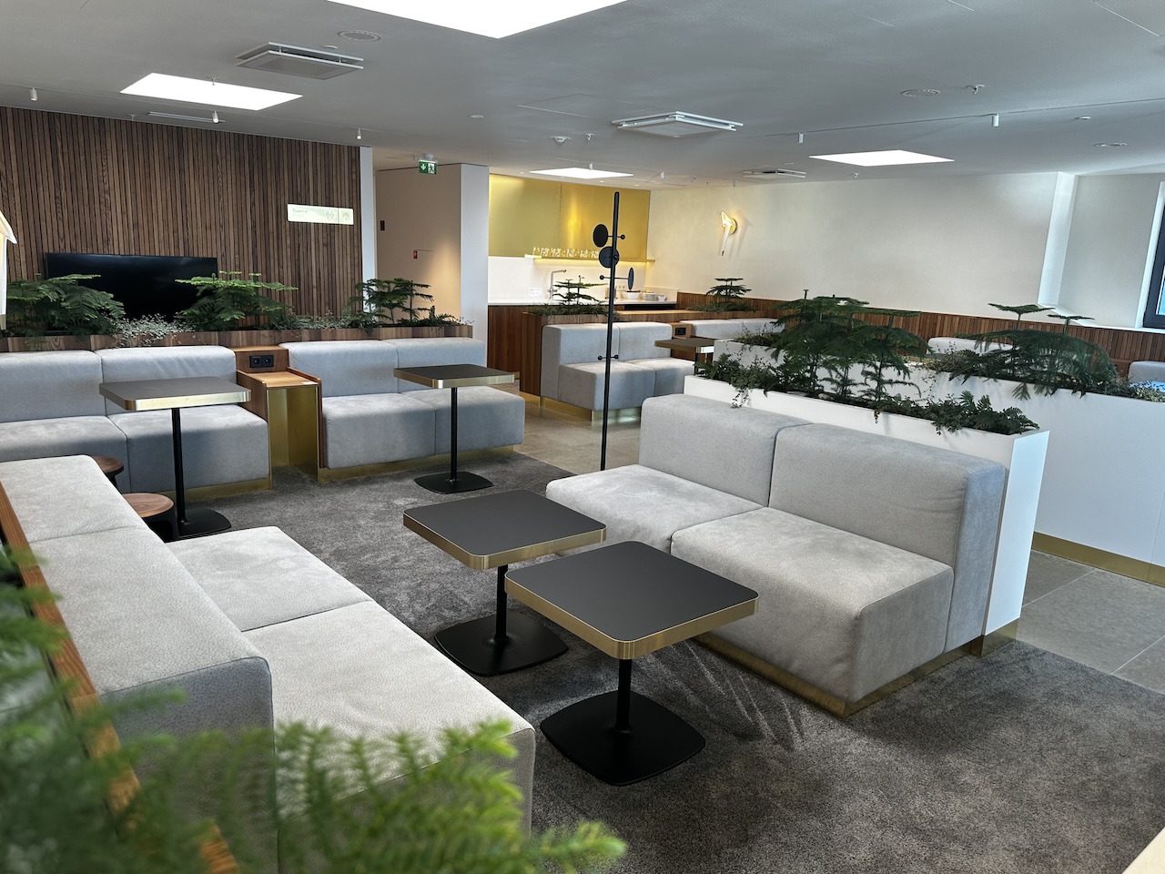 Die Lounge ist sehr modern eingerichtet und in mehrere Bereiche aufgeteilt. Ich war überrascht wie groß diese ist und wie viele verschiedene Sitzmöglichkeiten man bietet.
