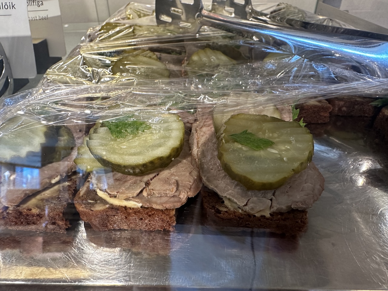 Es gab Salate, kleine Sandwiches, Käse und Obst. Vermutlich wird zu bestimmten Zeiten auch etwas Warmes aufgetischt, an diesem Morgen war die Küche aber (noch) kalt.