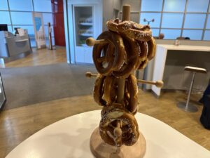 Auf einem separatem Tisch gab es zudem noch Kräcker, süße Teilchen und einen Brezenbaum.
