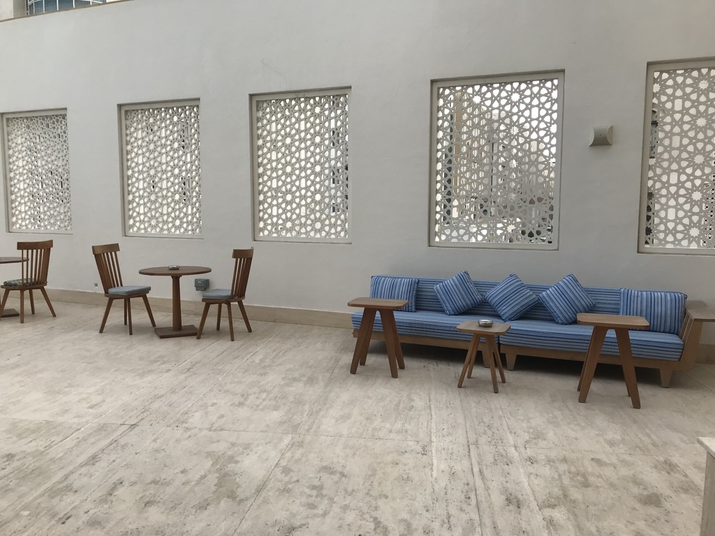 Unsere letzte Station führte uns in die Altstadt in das Al Najada Hotel. Da wir auch diesen Teil der Stadt erkunden wollten, fiel uns die Entscheidung das Hotel zu besuchen aufgrund der vielversprechenden Bilder in diversen Buchungsportalen sehr leicht. Das Hotel wurde erst im August mit einem „soft-opening“ eröffnet, die große Feier steht noch aus. Nach einer kurzen Fahrt im Uber hielt unser Fahrer direkt vor dem Hotel. Schon beim Aussteigen aus dem Wagen wurden wir sehr freundlich begrüßt und ins Hotel begleitet. Auch um unsere Koffer wurde sich direkt gekümmert.