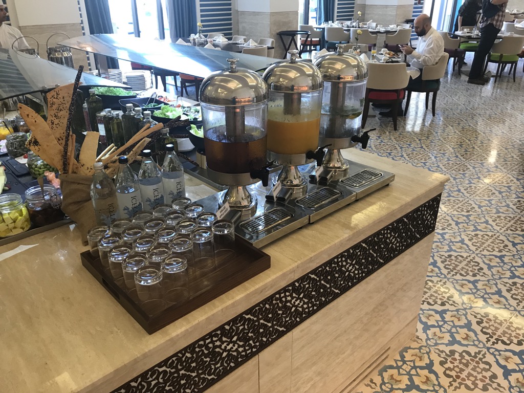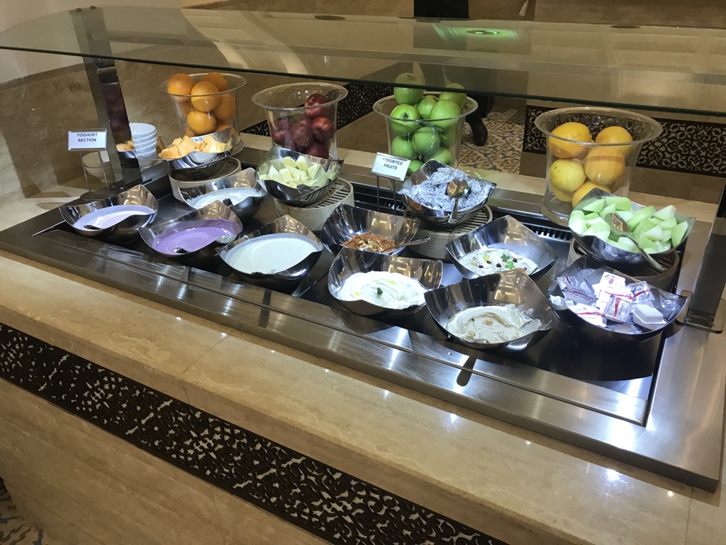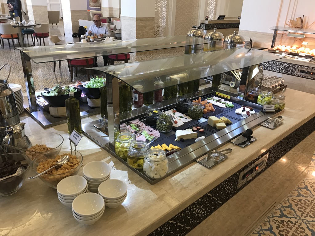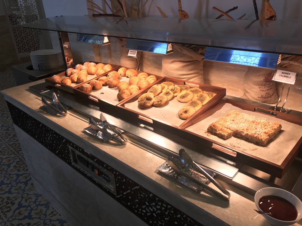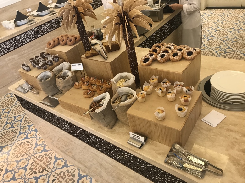 Das Buffet wirkte im ersten Moment nicht übermäßig groß, bot aber alles was das Herz begehrte. Es gab eine große Auswahl an Backwaren, Aufstrichen, Wurst, Käse und Obst. An der Seite waren eine ganze Reihe warmer Speisen aufgebaut. Diese Auswahl ergänzte die Live Cooking Station für Eierspeisen und Pancakes wunderbar. Alle Speisen und Getränke die wir probiert haben waren von ausgezeichneter Qualität. Auch hier war das Personal sehr freundlich und hat regelmäßig geschaut ob noch etwas benötigt wird.