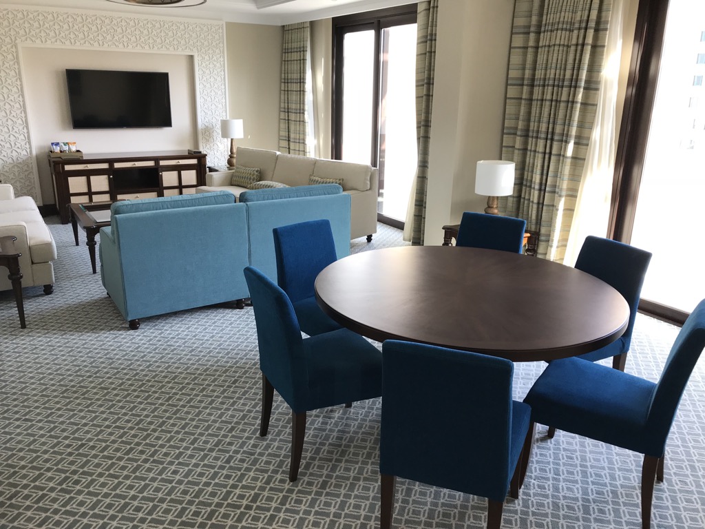 Am Check-In Schalter wurden wir sehr herzlich begrüßt. Die Angestellten waren vorbereitet und unsere Daten befanden sich bereits im System, sodass der Check-In Vorgang sehr schnell abgeschlossen war. Wir bekamen die Zimmerkarten und den Wi-fi Code, sowie gekühltes Mineralwasser. Uns wurde angeboten uns zum Zimmer zu begleiten, was wir dankend annahmen, denn so konnten wir gleich erfahren wo sich z.B. Pool, Gym und andere Spots des Hotels befanden.