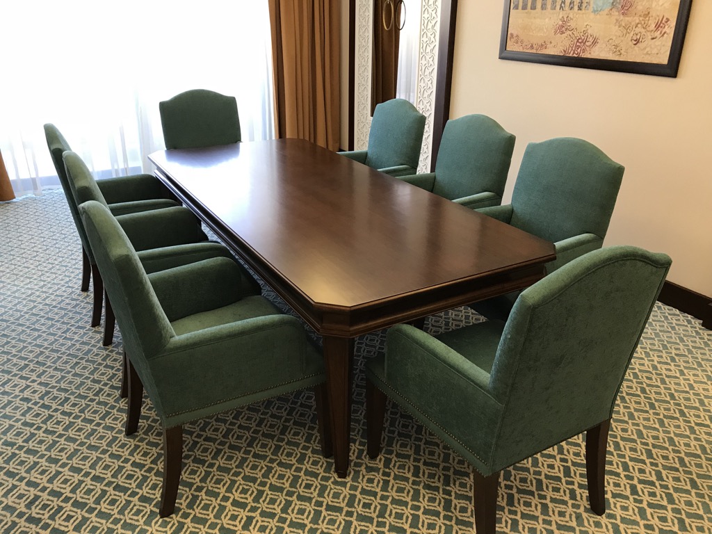 Direkt vor den Fenstern befanden sich noch mehrere gemütliche Polstermöbel mit einem Couchtisch. Neben den Couchmöbeln befand sich noch ein Schreibtisch, an welchem sogar zwei internationale Steckdosen montiert waren. Auch wenn wir in der Regel sehr gut mit Adaptern ausgestattet sind, kann es durchaus passieren, dass auch wir sie mal vergessen und sehr dankbar über internationale Steckdosen sind.