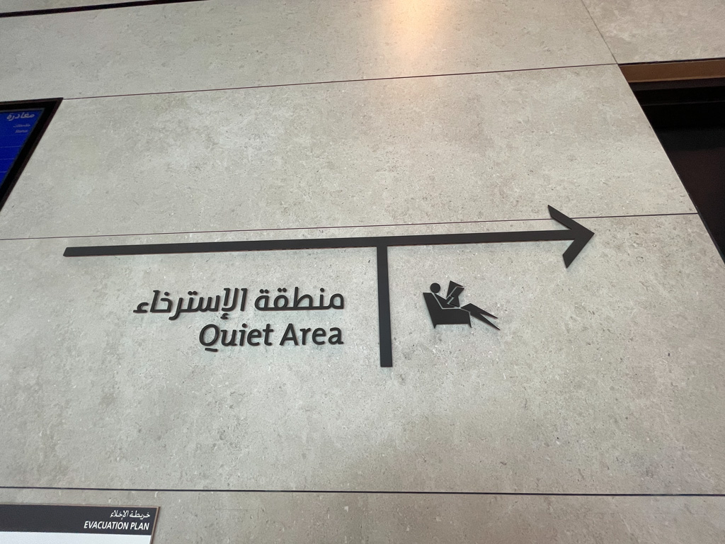 Zum Aufbau der Lounge verweise ich auf die lesenswerte Beschreibung von Sebastian. Dank seiner Beschreibung fand ich mich schnell in der Al Safwa First Class Lounge zurecht.