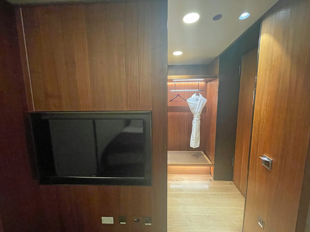 Die Planung der Elektroeinrichtung muss noch aus dem analogen Zeitalter stammen, denn es gab lediglich UK-Steckdosen, aber keine USB Stecker. Außerdem ließ sich aus Sicherheitsgründen das Licht im Raum nicht komplett abschalten.